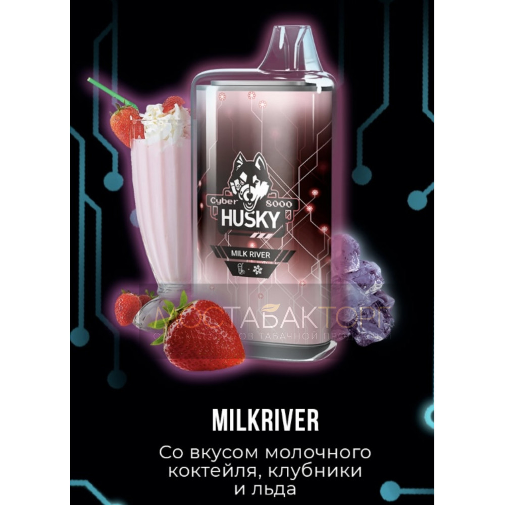 • Электронная сигарета Husky Cyber MILK RIVER (Хаски Кибер Клубничный молочный коктейль)